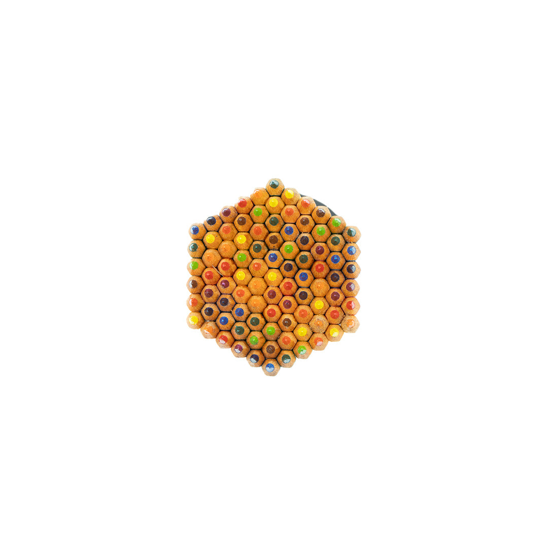 This is 8 packets of the small Faber-Castell pencils that I glued into a skull-shaped block so my crafty carver could carve a skull into it. Each is unique. And worthy of any household.