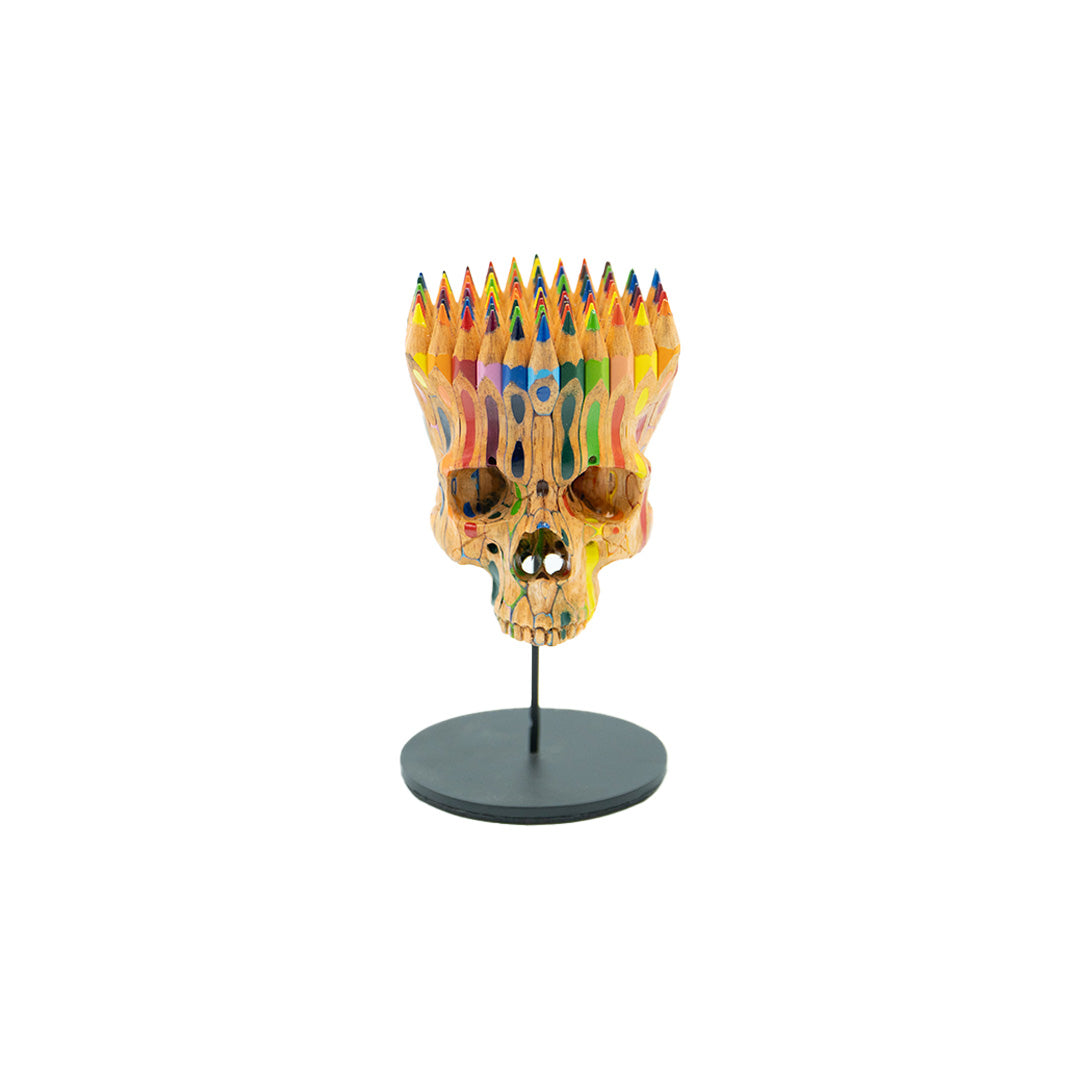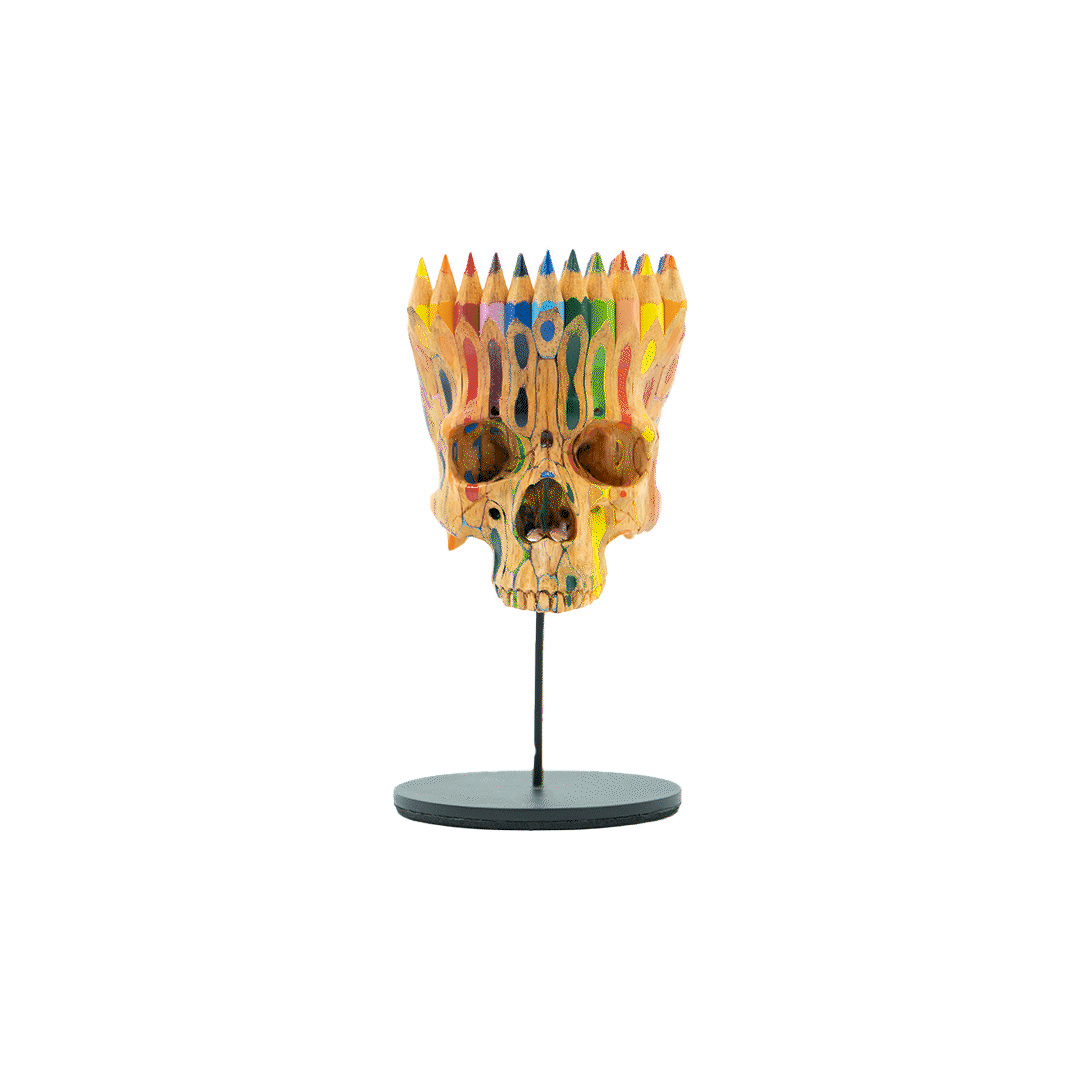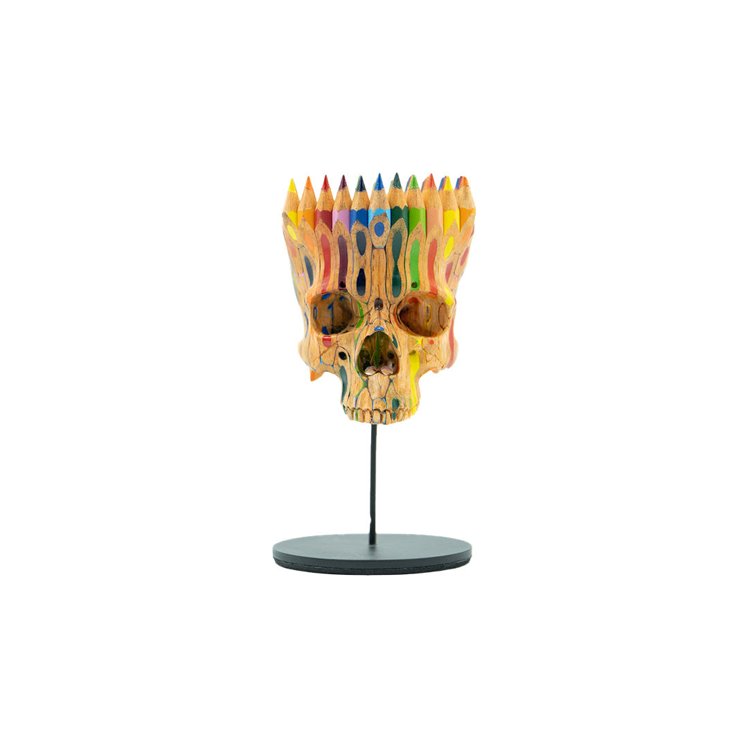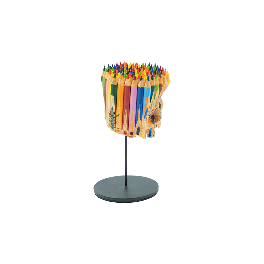HAND-CARVED FABER CASTELL COLOR PENCILS SKULL - SMALL