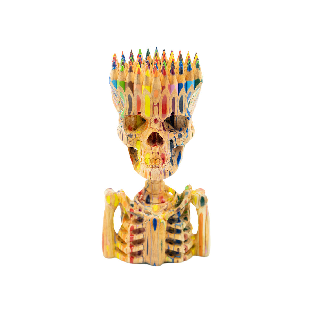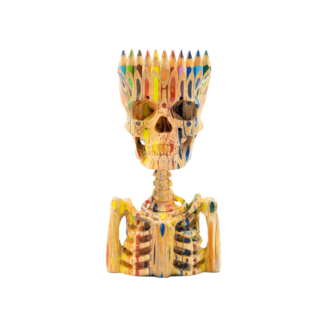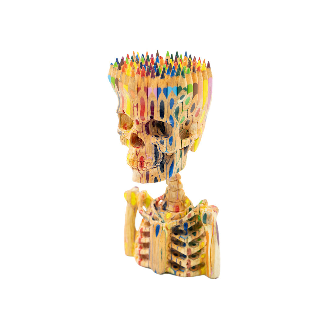 HAND CARVED FABER-CASTELL COLOR PENCIL SKULL