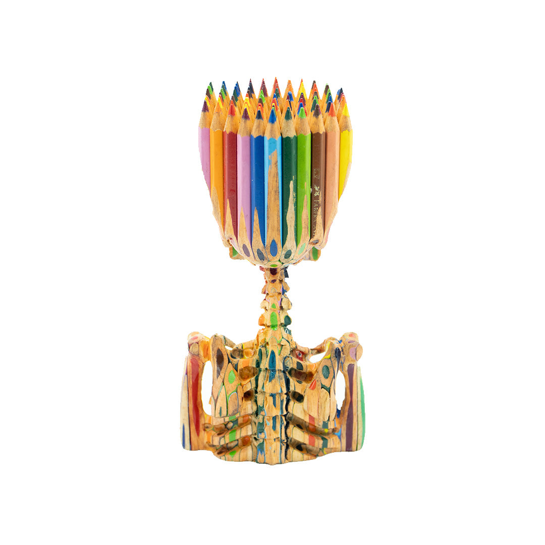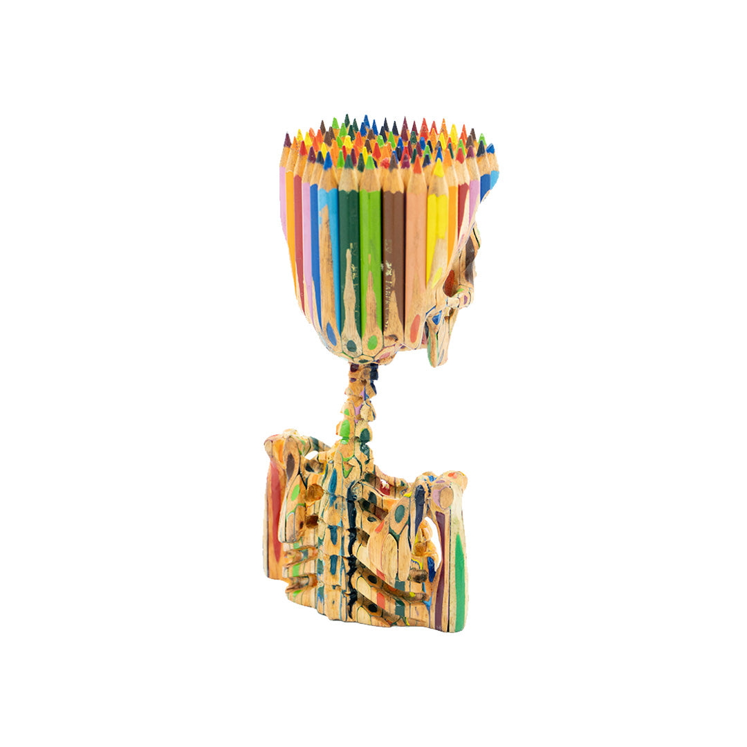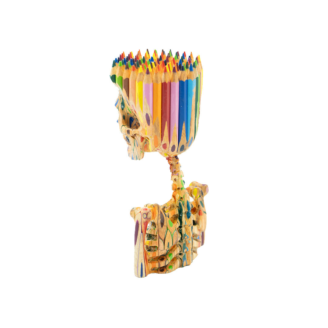 HAND CARVED FABER-CASTELL COLOR PENCIL SKULL