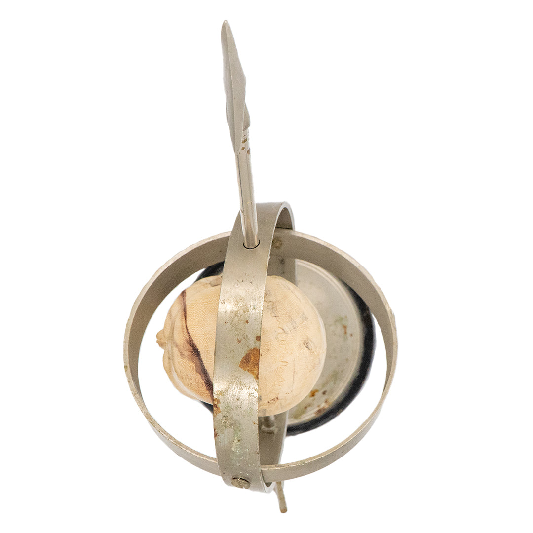 HAND CARVED WOOD SKULL INSIDE VINTAGE BRASS ARMILLARY SPHERE SUNDIAL