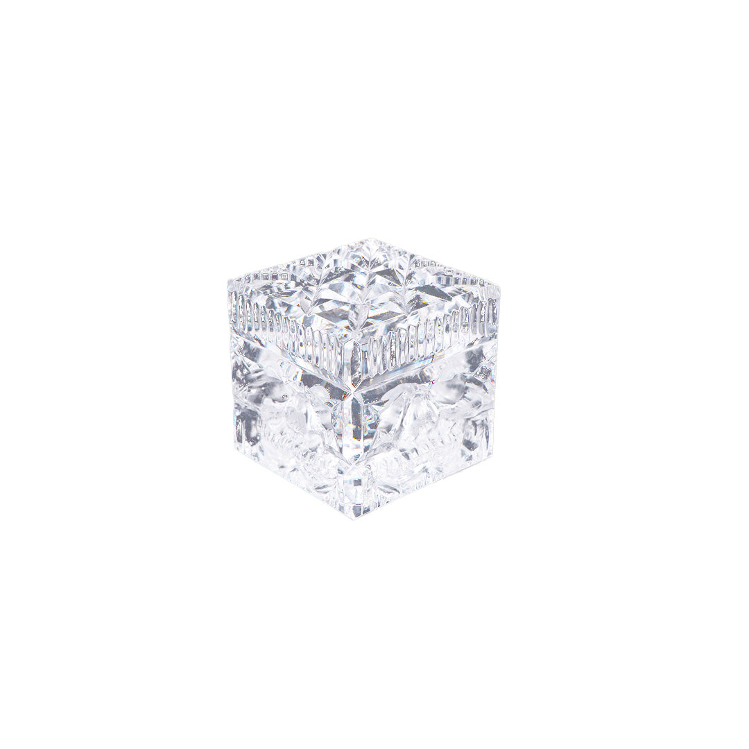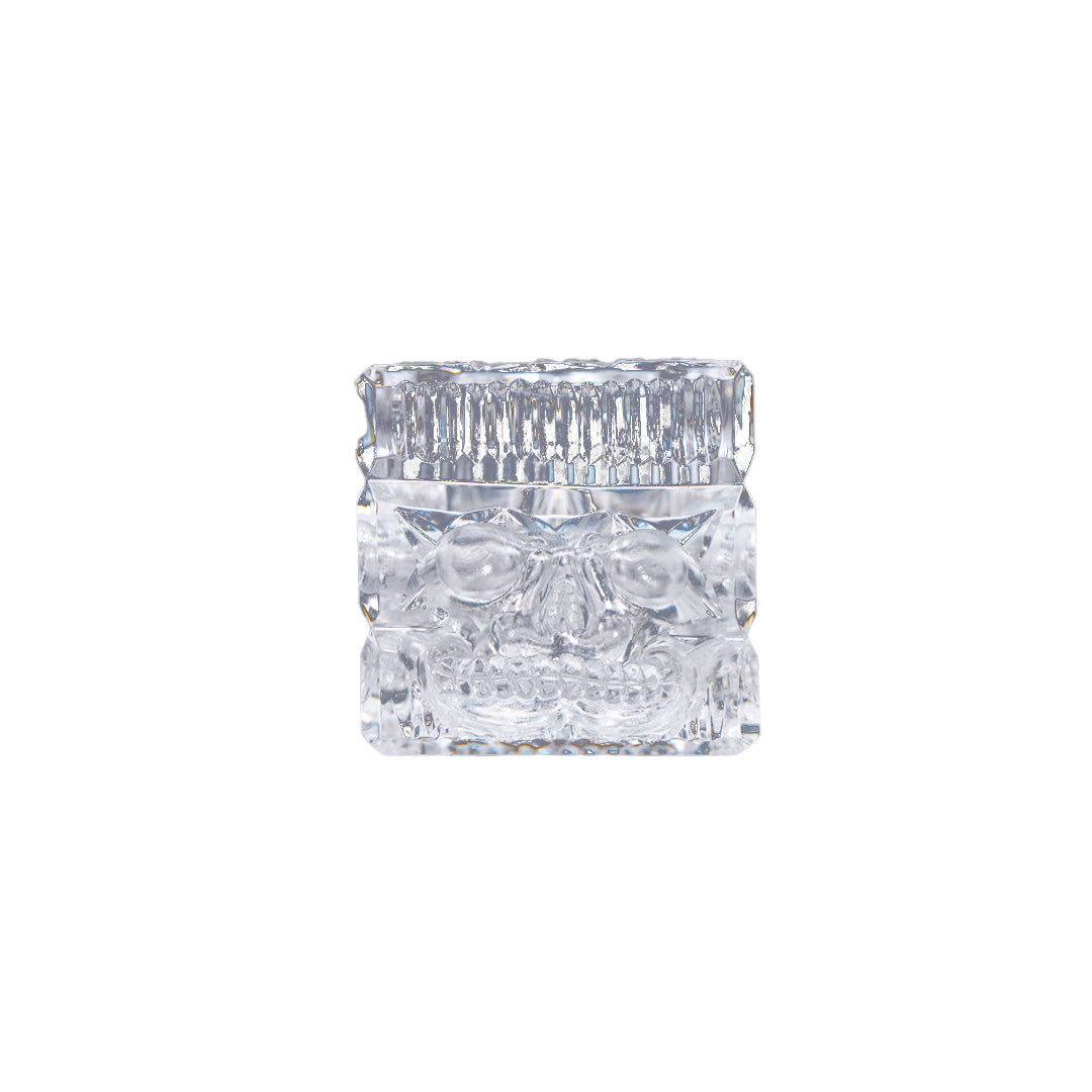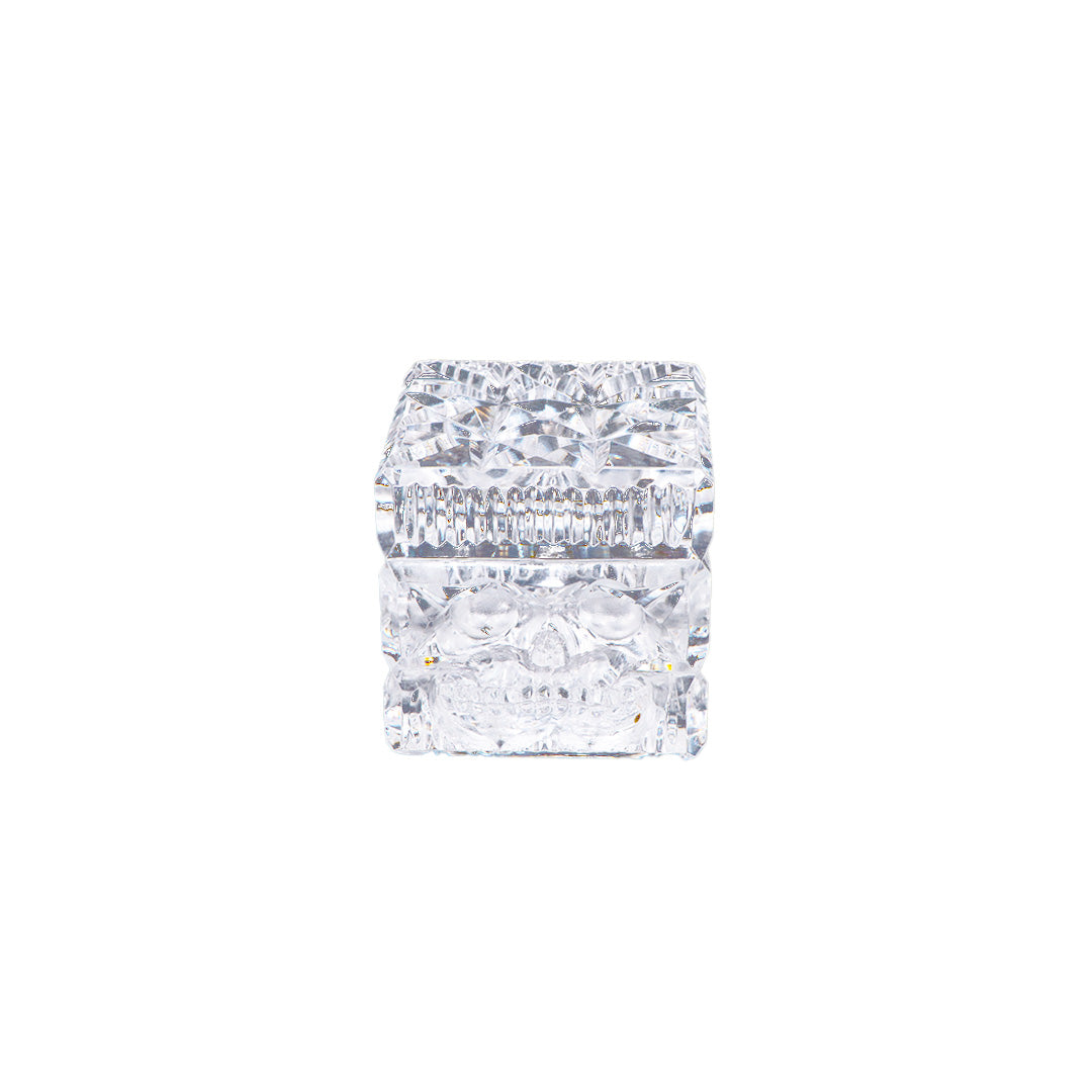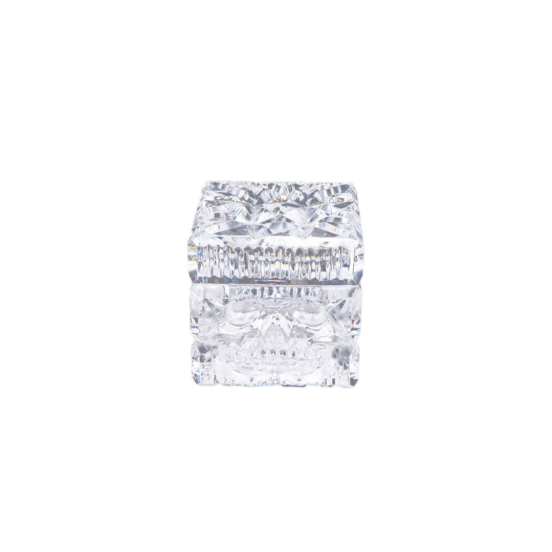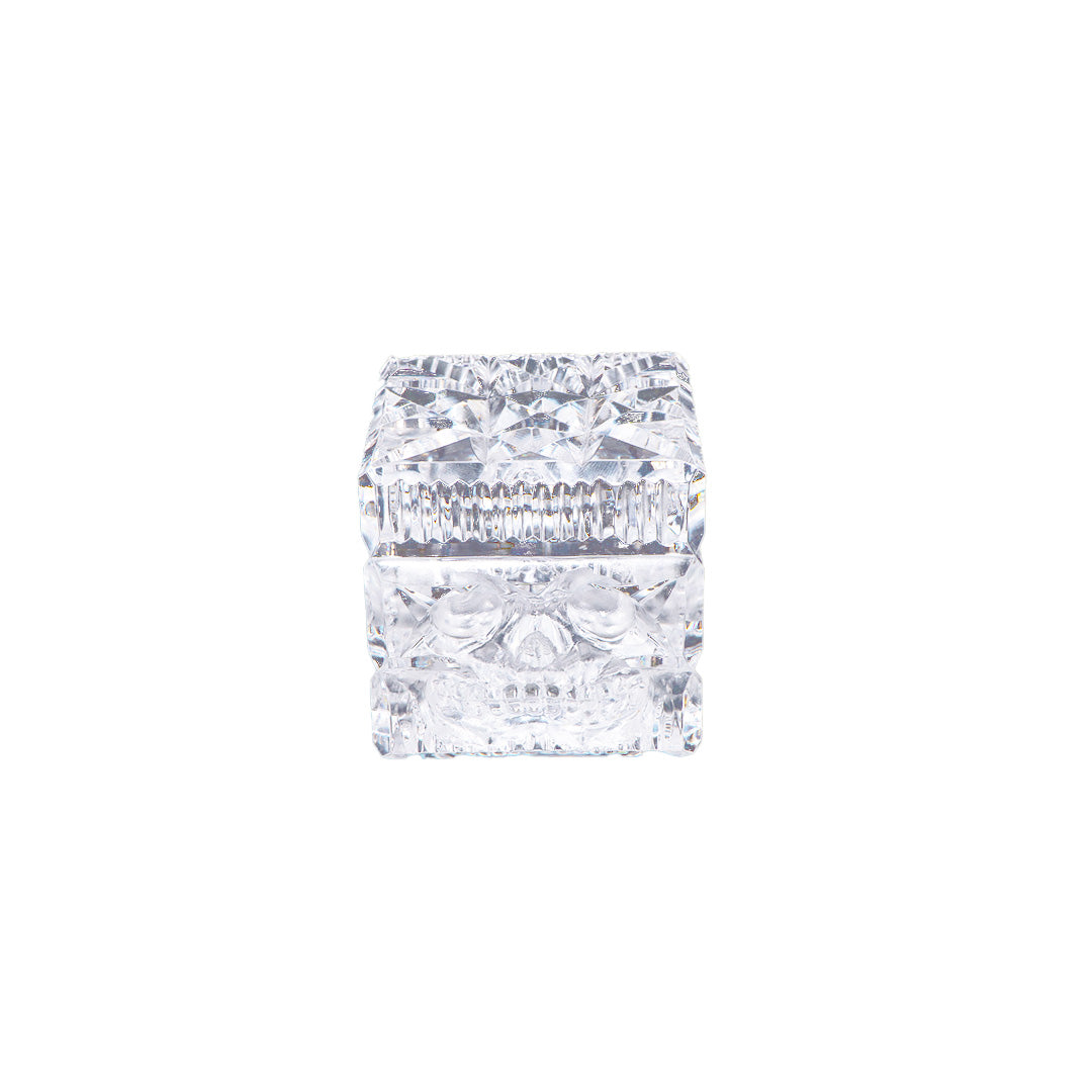 HAND CARVED LEAD CRYSTAL CUBE PAPERWEIGHT SKULL