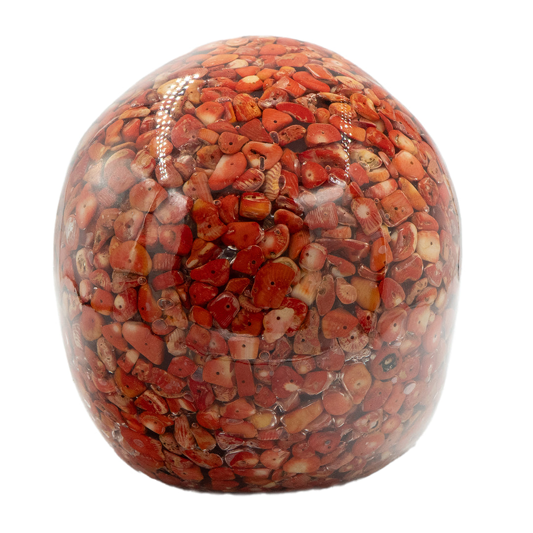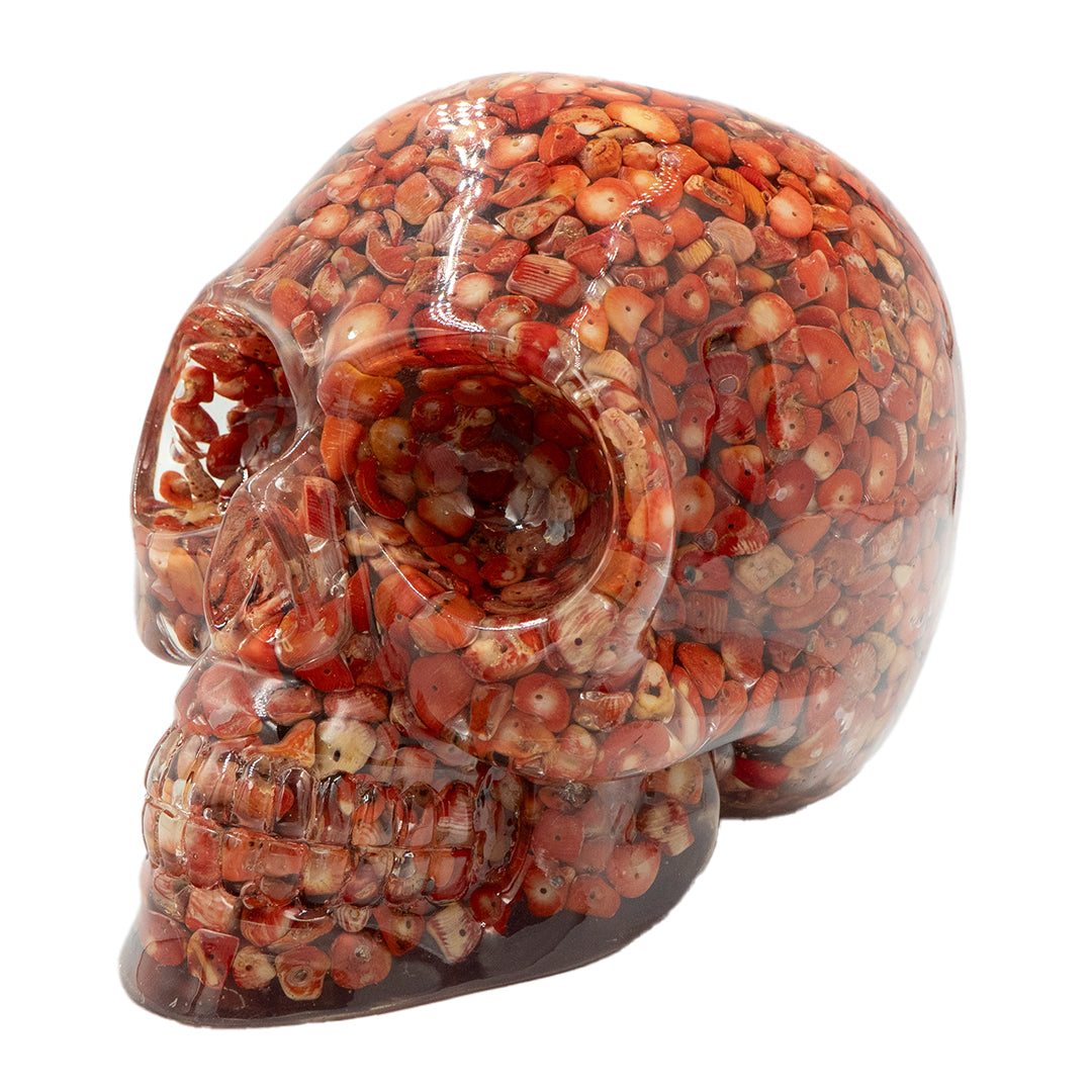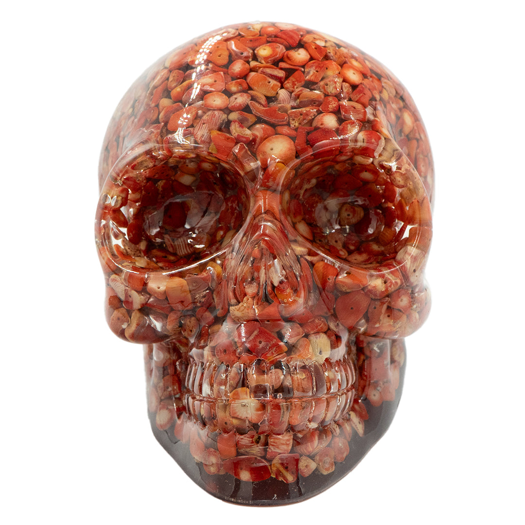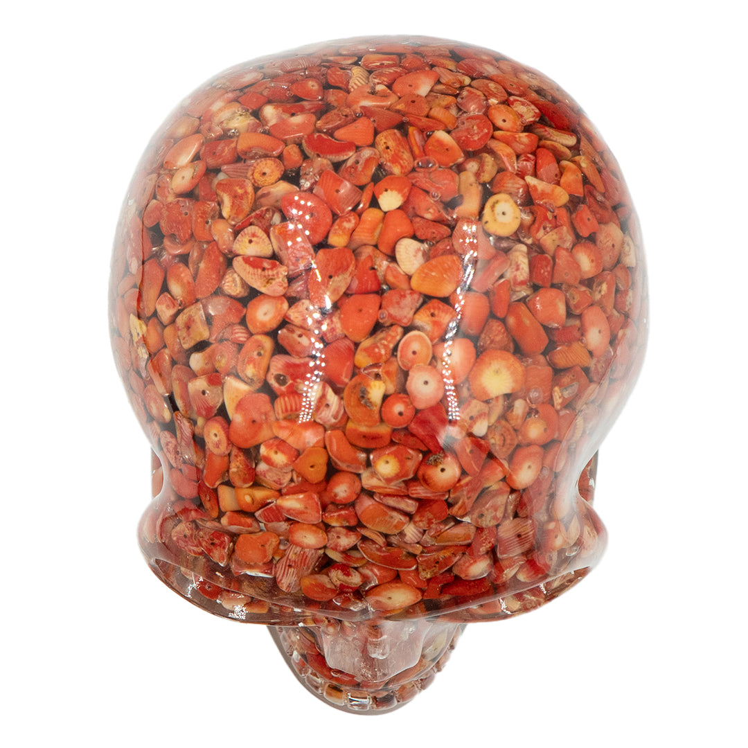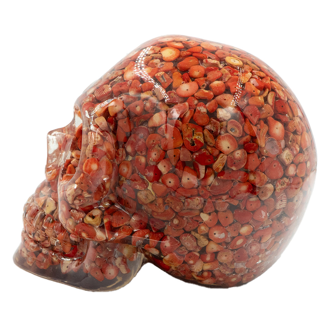 CLEAR RESIN SKULL - RED CORAL BEADS